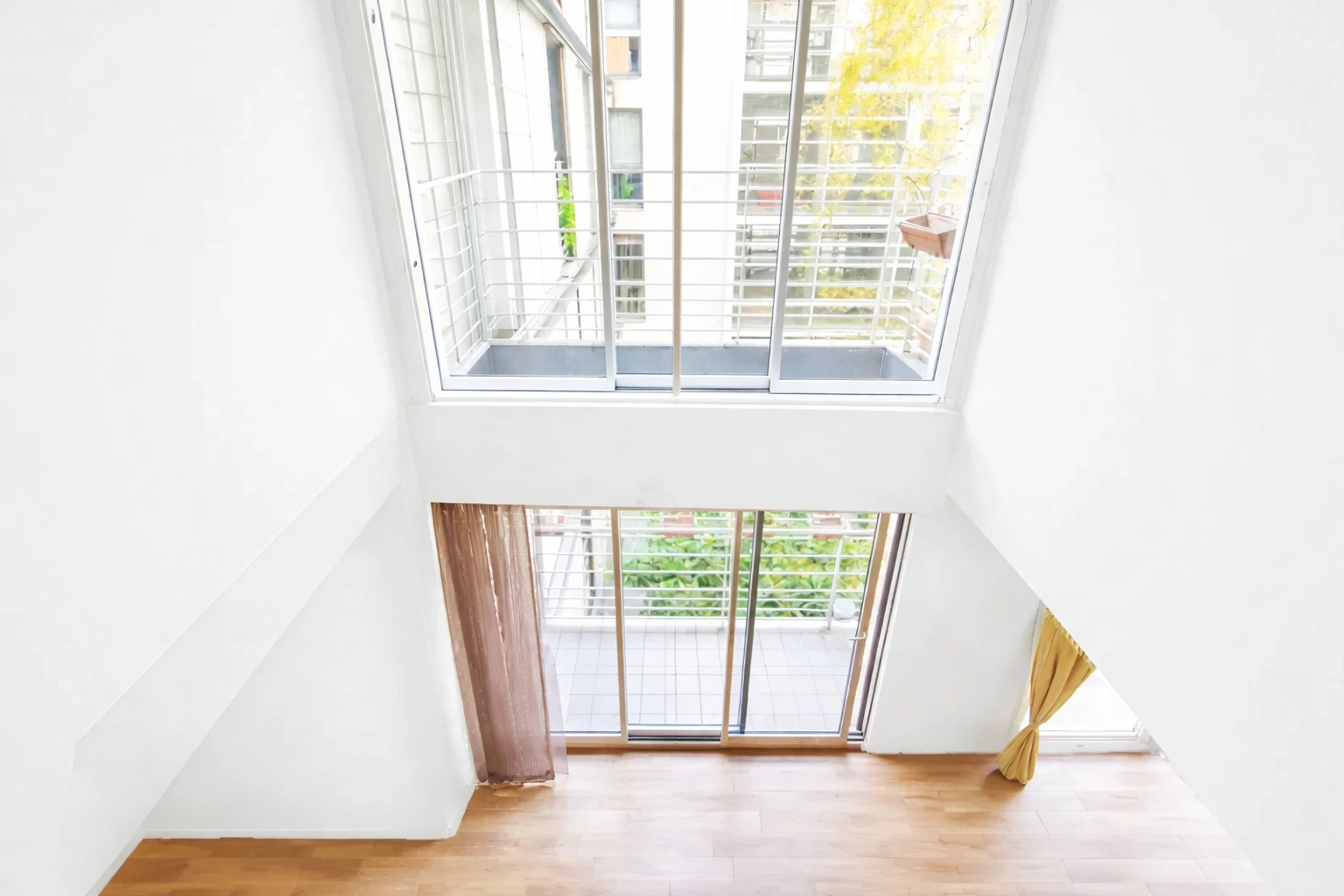 Au deuxième étage : un grand séjour de 45m2 avec une superbe hauteur sous plafond (5m) donnant sur une terrasse dînatoire (6m²), une cuisine indépendante, une salle d'eau, un toilette invités .