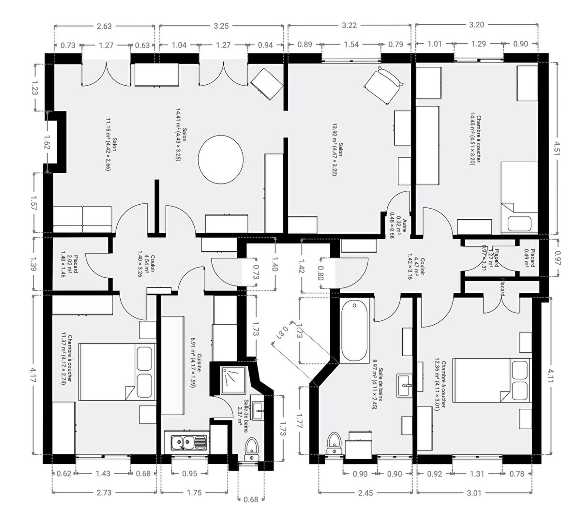 Ce 6 pièces offre une configuration idéale : un double séjour de 28 m², 4 chambres de 13 m² chacune, une cuisine dînatoire, une salle de bains avec toilettes, une salle d'eau avec WC ainsi que 2 grands dressings.